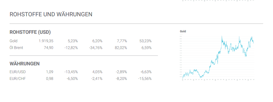 Bis auf wenige Ausnahmen nahm der Inflationsdruck bei vorlaufenden Preisindikatoren als auch den Verbraucherpreisen im Verlauf des Quartals ab. Entwicklungen im Rohstoffsektor waren dabei mitentscheidend. Im Sektor der Industriemetalle kam es im Quartalsvergleich zu leichten Preiseinbußen (Kupfer, Nickel, Aluminium). Im sensiblen Energiesektor ergaben sich Entspannungen. So notierte die Nordseeölsorte Brent am Ende des 1. Quartals 2023 bei 73,60 EUR, aktuell bei 67,80 EUR. Auch die Erdgaspreise waren in Europa im Quartalsvergleich weiter leicht rückläufig.